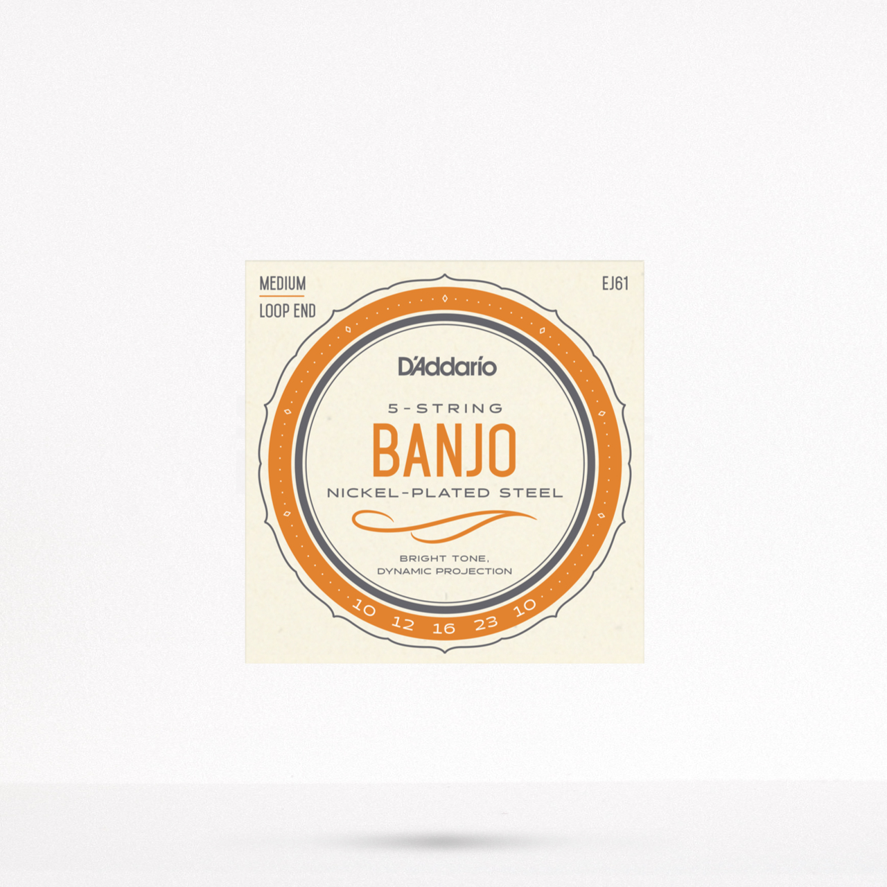 Las cuerdas EJ61 son de un calibre medio para un banjo de 5 cuerdas, utilizando acero chapado en plata alto en cabono con acero chapado en nickel para el entorchado. Calibre 10-23