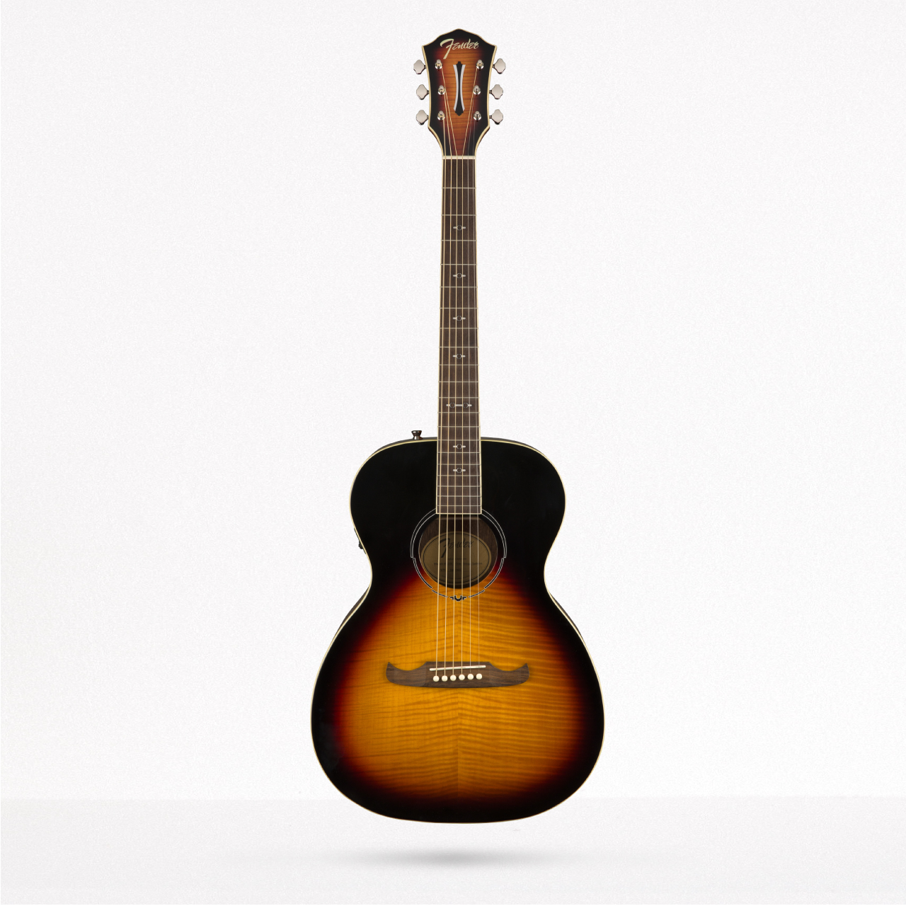 Una guitarra muy bonita, con una construcción laminada que tiene buena resonancia. El cabezal 3x3 y el puente viking (bigotitos) hacen que esta guitarra parezca de un nivel superior aun cuando es muy asequible. El brazo es de caoba y la tapa de maple flameado. Prestaciones top en una guitarra de entrada que esta lista para el escenario gracias a su pastilla fishman.